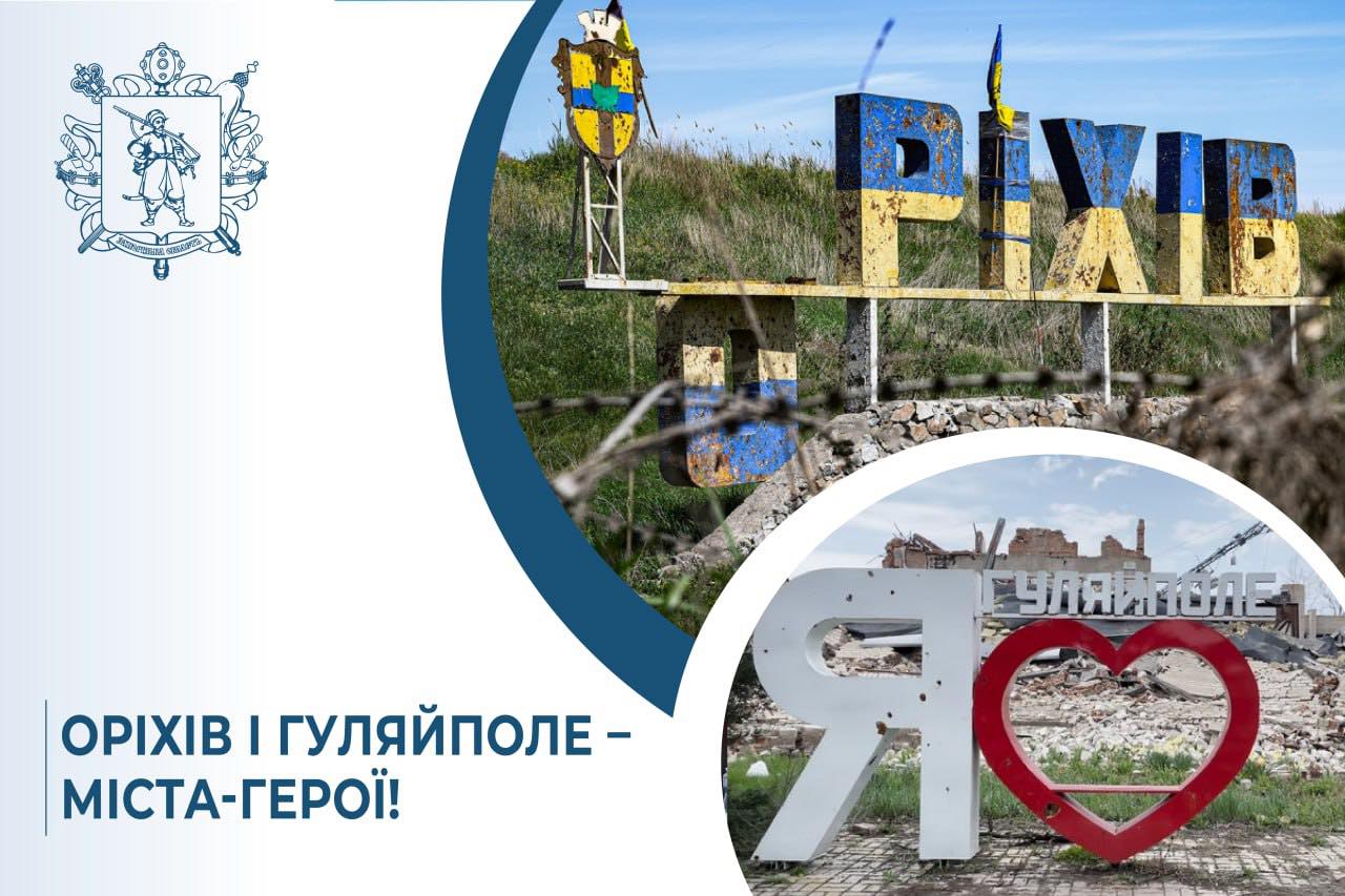 Президент України Володимир Зеленський підписав Указ про присвоєння почесного звання «Місто-герой України» 16 містам України, зокрема Оріхову та Гуляйполю. Цим званням відзначено подвиг, героїзм та стійкість їхніх жителів.