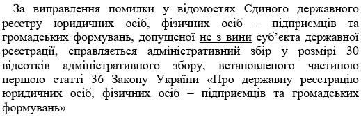 Назва :Виправлення помилок, допущених у відомостях Єдиного державного реєстру юридичних осіб, фізичних осіб – підприємців та громадських формувань